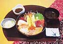 ![]() | 伊豆の味処 錦 (東伊豆) | 新鮮な魚介を使った丼物は、豪華でボリューム満点。『海の幸丼』は、ヒラメや、ウニ・イクラなど10種ものネタが器をうめつくしている逸品。 |
